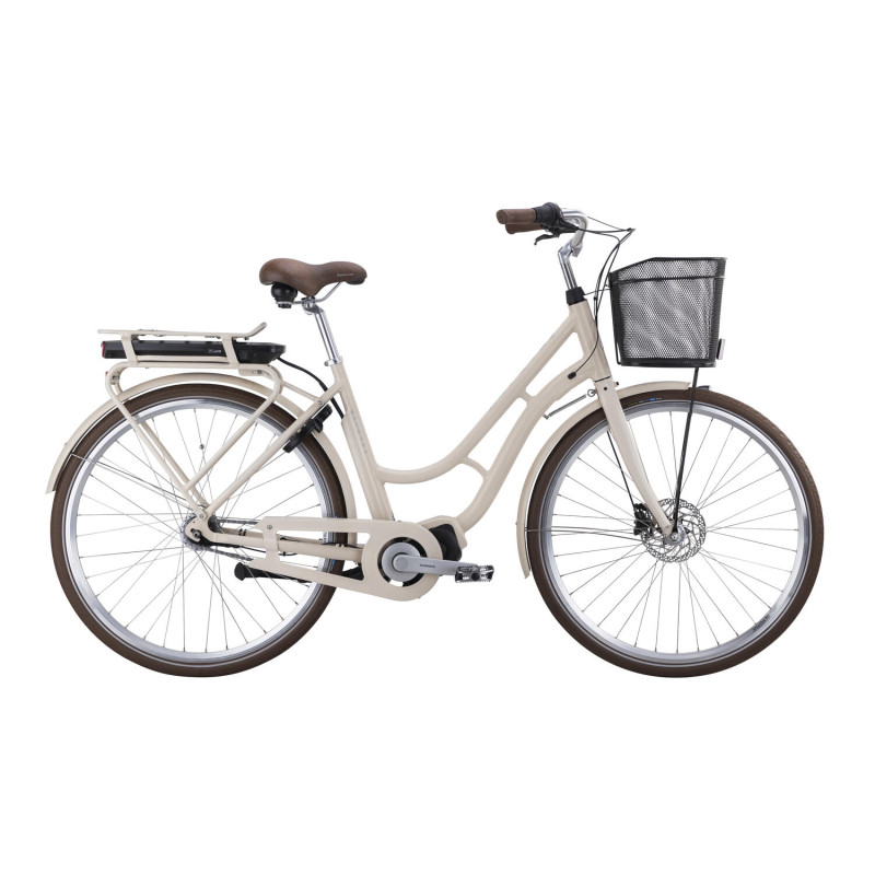Monarks populära klassiker Karin som elcykel. Den karakteristiska hängmatteramen som funnits med Monark långt tillbaka i i tiden, har omsorgsfullt utvecklats till en elcykel utan att för den skull äventyra den populära designen. Med en tyst och diskret Shimano centermotor i cykelns vevparti blir cyklingen ett svettfritt nöje, även med last på cykeln eller en cykelkärra hängandes efter. Ett slimmat låsbart 400 wh batteri sitter snyggt integrerat i pakethållaren som har försetts med klicksystemet AVS, där korgar och väskor enkelt kan klickas av och på. En LCD-display på styret håller dig uppdaterad om din cykel och din cykling. Denna cykel har fotbroms, 7 växlar, aluminiumram och kvalitetskomponenter som är utvalda för att skapa en elcykel med högsta kvalité och prestanda. Karin tillverkas av kunniga cykelbyggare och med massor av cykelkärlek i vår svenska fabrik i Varberg.